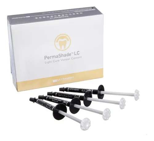 PermaShade LC es una resina de fijación fotopolimerizable utilizada exclusivamente para cementar prótesis translúcidas donde la luz puede transmitirse y la coincidencia del color es importante. Su jeringa ergonómica hace que la cementación de las prótesis delicadas sea más cómoda que con otros métodos de aplicación. Con una estabilidad de color resistente y una baja contracción, PermaShade LC es ideal para crear una sonrisa duradera y estética.