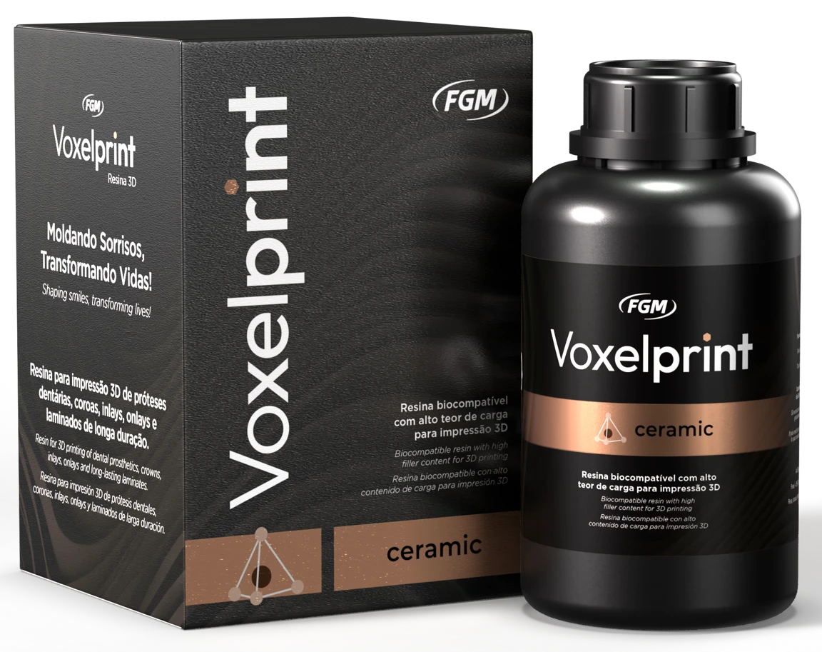 Voxelprint Ceramic es un composite dental fotopolimerizable y biocompatible, indicado para la fabricación de prótesis unitarias sobre dientes e implantes.
